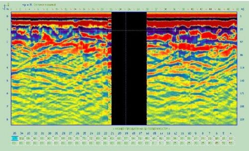 2. Внутри храма Всех святых мучеников в западной части его правого придела (придел Симона Зилота) на глубине 1 метр имеется квадратная площадка размерами 3 на 3 метра. Под площадкой — «мертвая» зона, не «читаемая» георадаром. Предполагаем, что это место последнего — тайного — захоронения Алапаевских Мучеников, которое было осуществлено в апреле 1947 г. Местоположение ямы и ее размеры в точности соответствуют описанию места тайного захоронения алапаевских мучеников по версии С. Фомина (см. Приложение N2).